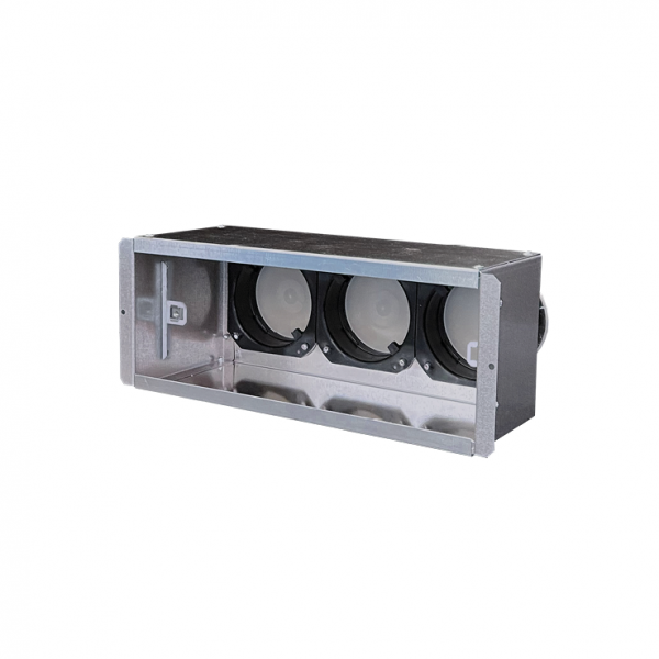Horganyzott acéllemzből készült, központi hővisszanyerős szellőztetésnél a befúvási vagy elszívási pontok kialakítására alkalmas légtechnikai elem. 3 db 75 mm átmérőjű, a hátoldalon elhelyezett csőcsatlakozással, állítható áteresztőképességgel (opc. rendelhető Aerauliqa TUNE80 szabályzó segítségével). 1 db esztétikus kialakítású, 300 x 100 mm-es Aerauliqa PLENUM védőrács (fehér vagy fém színű) illeszthető hozzá.