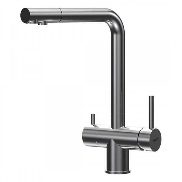 Az ELLECI Cross Pure (Króm) csaptelep különleges kialakítása révén egyetlen csaptelepen belül biztosítja a szokásos csapvíz és a tisztított, szűrt víz használatát. A dupla karos rendszer lehetővé teszi a három különböző vízáram – hideg, meleg és szűrt víz – közötti egyszerű váltást. Egy apró mozdulattal dönthet úgy, hogy főzéshez, teafőzéshez vagy iváshoz a lehető legtisztább vizet használja, miközben a mindennapi konyhai feladatokhoz továbbra is a megszokott vízellátás áll rendelkezésére.