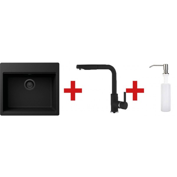 Szett tartalma: Elleci Time 105 (G40 Nero) mosogatótálca, fekete tartozékokkal + Shell Plus (G40 Nero) csaptelep + mosogatószer adagoló
