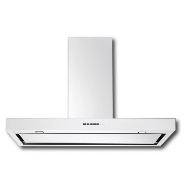A páraelszívó fektetett T-alakú kialakítása nem csupán modern megjelenést biztosít, hanem lehetővé teszi a hatékony elszívást is. A fehér színű felület elegánsan illeszkedik világos tónusú konyhákba, harmonizálva a letisztult belső terekkel.