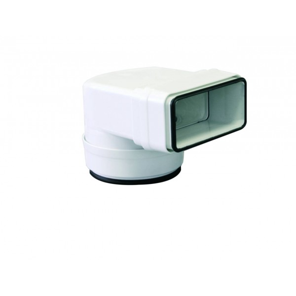 Légtechnikai rendszer kezdő- és végpontja között elhelyezhető átalakító elem, lapos csatorna és kör keresztmetszetű légtechnikai cső egymáshoz illesztéséhez.