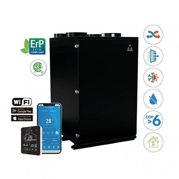 HOLTOP/AIRWOODS AV-HTPF35EI32 központi hővisszanyerős szellőztető beépített hűtő-fűtő funkcióval, entalpia hőcserélővel, LCD-s vezérléssel, WiFi-vel