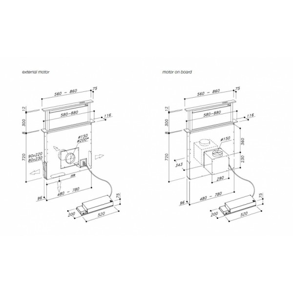 Szállítás 3-4 hétSirius - Páraelszívó S-DD2/L EM 90 cm LED inox motor nélkül